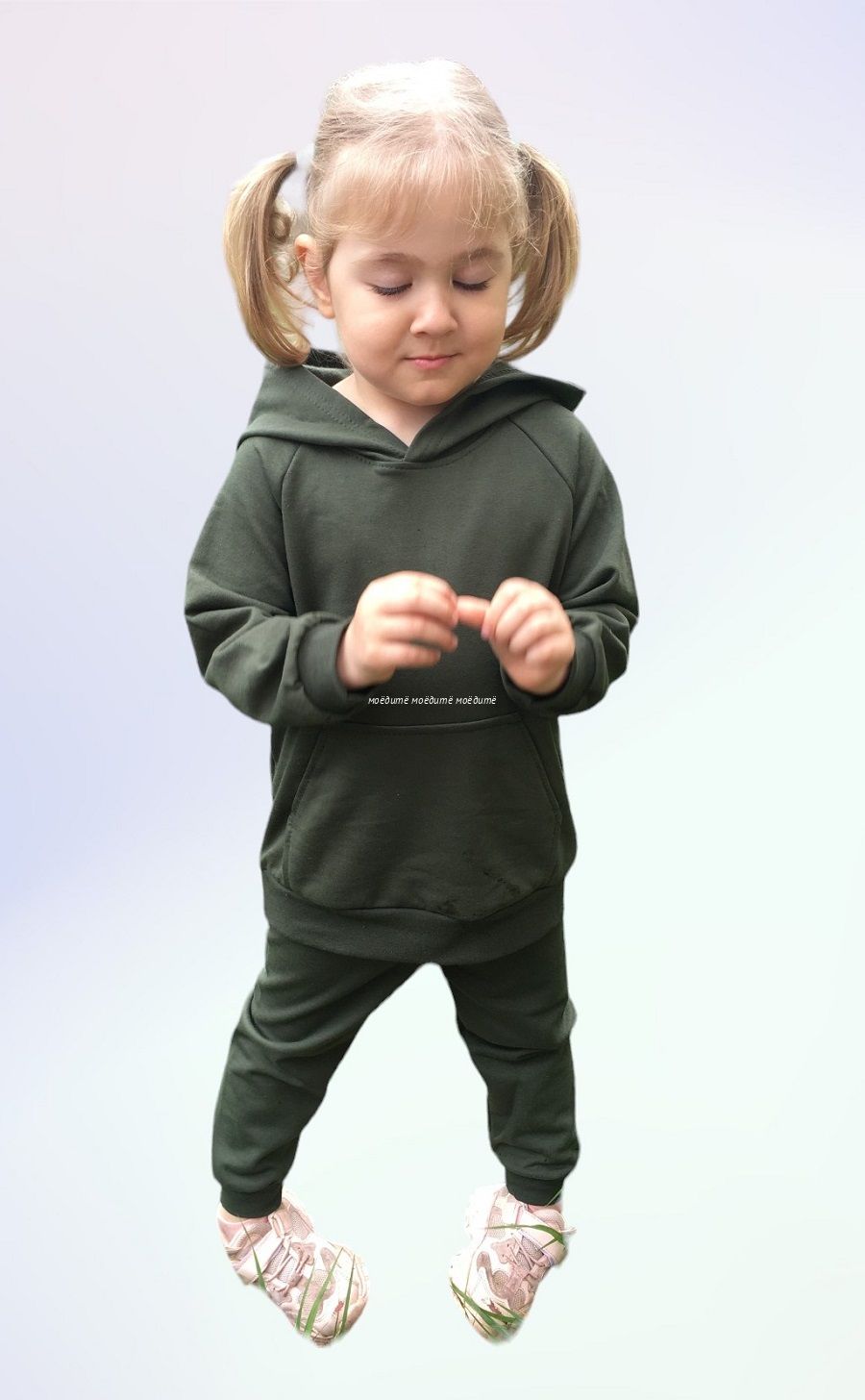 Костюм выполнен из футера 2-хнитки с тонким начёсом.